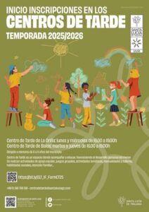 El Ayuntamiento de Santa Lucía de Tirajana, a través del Área de Infancia y Familia, informa que ya está abierto el plazo de inscripción para participar en los Centros de Tarde municipales, dirigidos a niños y niñas de entre 6 y 11 años.