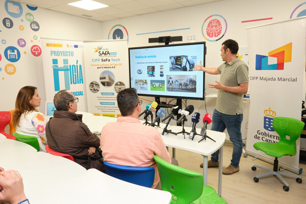 Alumnado del CIFP Majada Marcial trabajará en un proyecto pionero de robótica, orientado a mejorar la calidad de vida de las personas mayores y/o dependientes. Bajo el título ‘Higía, Robot Social’, la iniciativa se llevará a los centros sociosanitarios de atención a la discapacidad y/o personas dependientes del Cabildo de Fuerteventura, tal y como explicaron la presidenta Lola García y el consejero de Acción Social, Víctor Alonso, durante la presentación del proyecto en las aulas del centro educativo.