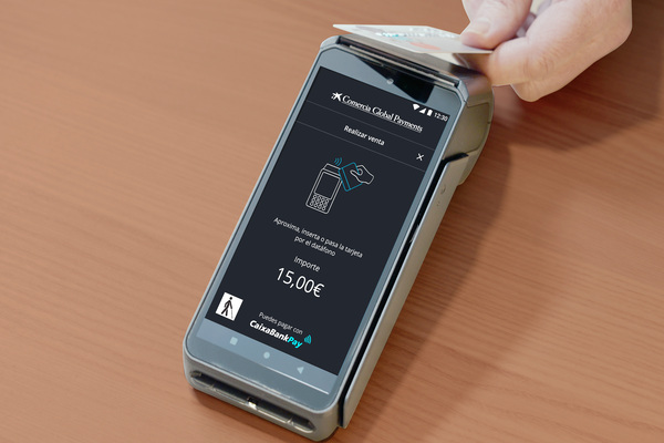 CaixaBank, en su compromiso con la accesibilidad de las personas con discapacidad visual, ha adaptado sus TPV táctiles de nueva generación con una nueva funcionalidad, desarrollada junto con la ONCE. Este servicio, que se puso en marcha a finales de 2023, facilita que las personas con discapacidad visual puedan realizar compras de forma más segura en comercios que dispongan de datáfonos con sistema operativo Android (los táctiles sin botones). Por su parte, los datáfonos tradicionales tienen relieve en los botones para que las personas con discapacidad visual puedan identificar los números.