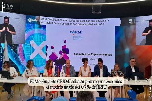 El Comité Español de Representantes de Personas con Discapacidad (CERMI) ha aprobado este lunes, en el marco de su Asamblea Ordinaria anual de Representantes, una resolución política por la que insta a las Administraciones Públicas a prorrogar durante cinco años, hasta 2030, el actual modelo de distribución de los fondos del 0,7 % de interés social procedentes del IRPF y del Impuesto de Sociedades, que se distribuye en un 80 % a las Comunidades Autónomas y un 20 % al Estado.