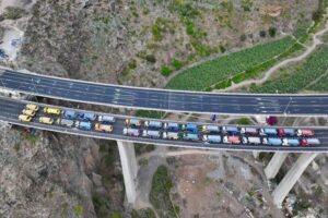 La Consejería de Obras Públicas e Infraestructuras, Arquitectura y Vivienda del Cabildo de Gran Canaria, que dirige el vicepresidente Augusto Hidalgo, ha culminado durante la mañana de hoy con éxito la prueba de carga con más de 30 camiones cargados circulando al unísono sobre los dos puentes del viaducto del Guiniguada, en la Circunvalación de Las Palmas de Gran Canaria (GC-3), para certificar que la estructura del viaducto ha recuperado toda la resistencia tras las obras de reparación que el Cabildo ha estado ejecutando en los últimos tres años. Debido a la complejidad de esta maniobra, ha sido necesario cerrar al tráfico al completo el tramo de la Circunvalación que va desde Barranco Seco hasta La Paterna, desde la noche del viernes. Finalmente, a las 10:30 horas de hoy se abrió el puente en sentido norte, y sobre las 15:00 se pretende abrir el que va en dirección sur, y restablecer de esta forma todo el tráfico en la Circunvalación.