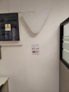 Este sistema muestra en forma de notificaciones visuales y sensoriales tanto en las luces de señalética instaladas en los edificios, como en los dispositivos (smartphones, smartwhatches, tablets, smartbands, etcétera) de los usuarios y usuarias que se descarguen la aplicación del sistema. A tal efecto, en las entradas de las oficinas se han colocado carteles informativos con un código QR.