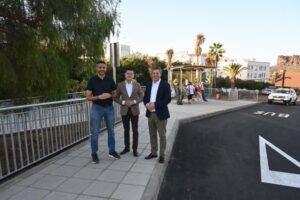 El consejero de Presidencia y Movilidad Sostenible del Cabildo de Gran Canaria, Teodoro Sosa, junto al alcalde de Agaete, Jesús González Sánchez, y el director gerente de la Autoridad Única del Transporte de Gran Canaria (AUTGC), Ruymán Santana, visitaron este viernes las dos nuevas paradas de guaguas que se han habilitado en la GC-2, en la entrada al municipio agaetense, y que comenzaron a funcionar el pasado día 4 de este mes. Así, las autoridades conocieron de primera mano el resultado de esta actuación, en la que el Gobierno insular ha invertido 215.000 euros y que se considera fundamental para materializar la reordenación del tráfico, aliviar el acceso de vehículos pesados al casco de la localidad y, con ello, mejorar la movilidad en toda la zona.