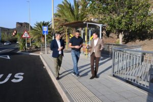 El consejero de Presidencia y Movilidad, Teodoro Sosa, junto al alcalde agaetense, Jesús González, y el director gerente de la AUTGC, Ruymán Santana, visitan las obras ejecutadas para habilitar ambas paradas