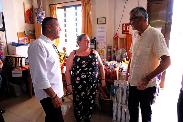 El presidente del Cabildo de Lanzarote, Oswaldo Betancort, acompañado por el consejero de Bienestar Social e Inclusión, Marci Acuña, y el viceconsejero de Bienestar Social del Gobierno de Canarias, Francisco Candil, visitaron el pasado jueves las instalaciones de la Asociación El Ático de la Abuela, en el municipio de Yaiza.