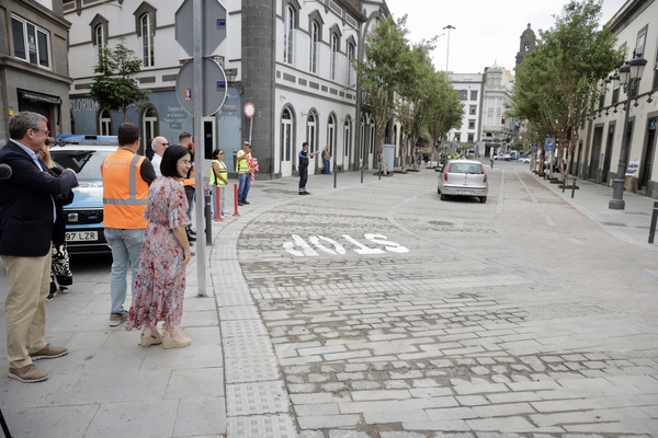 La alcaldesa de Las Palmas de Gran Canaria, Carolina Darias, ha visitado este lunes la finalización de las obras de mejora que se han llevado a cabo en el entorno de la Alameda Colón, en las calles General Bravo y Muro. Una actuación que ha permitido embellecer este entorno del barrio de Triana con una plataforma única al mismo nivel para vehículos a motor, bicicletas y peatones, que ganan espacio.