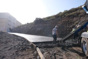 Los trabajos que se están desarrollando consisten en el hormigonado de toda la vía. El material utilizado para la pavimentación contará con fibras para así dotarlo de una mayor resistencia. También se rehabilitará la batería de imbornales que se encontraban fuera de servicio y que recogen el agua procedente de la parte alta del vial.