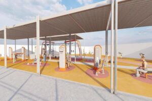 La nueva instalación también contará con un circuito perimetral para correr, de 143 metros lineales, así como 1.400 metros cuadrados de pavimento amortiguador y 600 metros cuadrados de césped artificial. Se generarán 200 metros cuadrados de sombra mediante la instalación de pérgolas permeables, en donde estarán ubicados los aparatos de fitness, el área de entrenamiento funcional y la zona destinada a calentamiento o yoga.