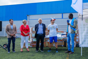 La entrega de este material, iniciativa del Departamento de Igualdad, Responsabilidad y Sostenibilidad de la RFEF, ha sido realizada por el vicepresidente de la RFEF y presidente de la Federación Interinsular de Fútbol de Tenerife, Alejandro Morales Mansito y por el presidente de la Federación Interinsular de Fútbol de las Palmas y de la Federación Canaria de Fútbol, José Juan Arencibia. También asistieron el presidente de la ONG Paz desde el Deporte, Jacomar Bolaños; Toñi Bordón, jefa de Infraestructuras de la Autoridad Portuaria de Las Palmas, y Mohamedou Sanghare, asistente de protección comunitaria de ACNUR.