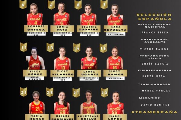 El seleccionador nacional, Franck Belén, ha convocado para este torneo a Vicky Alonso, Lourdes Ortega, Sonia Ruiz y Beatriz Zudaire (UCAM Murcia), Agurtzane Egiluz, Naiara Rodríguez y Laura Ugarte (Zuzenak), María Heras (UNES Sant Feliú de Llobregat), Vicky Pérez (Amiab Albacete), Sara Revuelta (Ilunion), Sindy Paola Ramos (IMF Getafe) e Isabel de Jesús López (Italia).