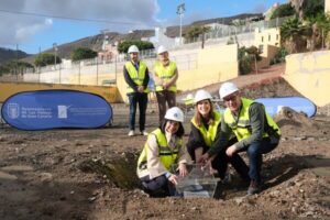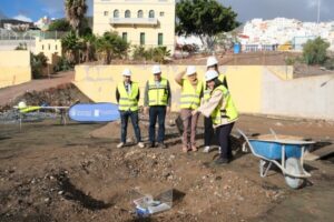 La alcaldesa de la ciudad, Carolina Darias, junto a la concejala de Deportes y presidenta del Instituto Municipal para la Promoción de la Actividad Física y el Deporte (IMD), Carla Campoamor; el concejal de Desarrollo Urbano, Mauricio Roque; la concejala del Distrito Vegueta-Cono Sur-Tafira, Nina Santana; y el gerente del IMD, Eloy García, iniciaron este viernes, simbólicamente, la construcción de este espacio con el acto de colocación de la primera piedra.