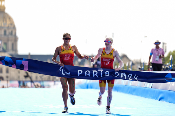 La triatleta Susana Rodríguez, guiada por Sara Pérez, avasalló este lunes en París para recibir su segunda medalla de oro en unos Juegos Paralímpicos, tras el logrado hace tres años en Tokio, con lo que aportó a España el segundo metal dorado del triatlón, puesto que Dani Molina se proclamó campeón pocas horas antes.