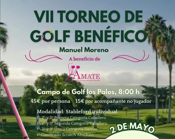 El Torneo de Golf Benéfico Manuel Moreno celebrará su séptima edición el próximo 2 de mayo de 2026 en el Campo de Golf Los Palos con el objetivo de dar visibilidad al cáncer de mama y apoyar la labor de ÁMATE.