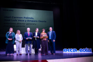 La gala estuvo marcada por momentos de reconocimiento y memoria, con un recorrido por la historia de ecca a través de testimonios y material audiovisual que reflejaron su impacto en la educación. Se rindió homenaje a quienes han hecho posible esta trayectoria, con una mención especial a los fundadores Maru Albújar y Antonio Torres, cuyo compromiso fue clave en el nacimiento de la institución, y se recordó a la primera alumna registrada, Estrella Álvarez, una vecina de El Carrizal que se convirtió en la primera alumna de la entonces denominada Radio ECCA.
