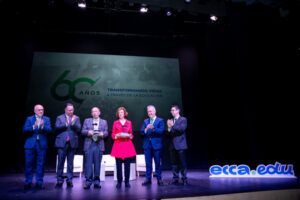 “La celebración del 60 aniversario de ecca.edu en Ingenio ha sido un momento profundamente conmovedor, un reencuentro de la gran familia ecca y un sentido homenaje al pueblo canario, como aquel que vivimos en nuestros orígenes hace ya 50 años. Ver el teatro Federico García Lorca lleno a rebosar, rodeados de tanto cariño, nos ha emocionado. Gracias de corazón a las autoridades, amigas y amigos que, con generosidad, han querido acompañarnos. Hemos revivido la rica historia de ecca, su diversidad y todo lo que nos une, mientras soñamos con un futuro lleno de esperanza, combinando nuestra esencia pedagógica con la innovación y las posibilidades que nos ofrece la inteligencia artificial”, afirma José María Segura S.J., director general de ecca.edu.