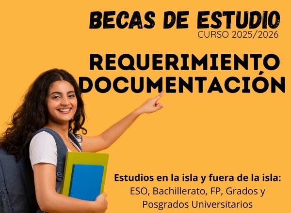 Las becas se dirigen a estudios dentro y fuera de la Isla de ESO, Bachillerato, FP y universidades (grados y posgrados). Toda la información y la lista de personas con requerimiento de documentación puede consultarse en el área de ayudas, becas y subvenciones de la página web del Cabildo.