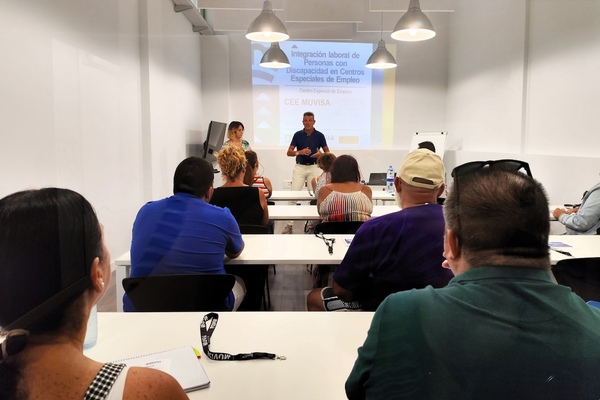 El coordinador de Servicios de Muvisa, Jordi Bermejo, y la técnica de la Unidad del apoyo de este CEE, Yurena Hernández , explican que el Centro cuenta ya con una plantilla de más de 30 personas con discapacidad física, sensorial e intelectual en distintos grados, también con casos en los que se ha declarado la discapacidad en la edad adulta y la incapacidad para desempeñar su profesión anterior.
