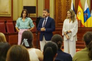 El alcalde de Santa Cruz, José Manuel Bermúdez, con la concejala de Acción Social y la consejera delegada de la Sociedad de Desarrollo, Charín González y Carmen Pérez, respectivamente, felicitaron hoy a los más de 70 alumnos y alumnas que superaron su formación en el proyecto “Proximidad y Acompañamiento Socioeducativo y Laboral en los Servicios Sociales Municipales”, un curso subvencionado de manera directa por el Cabildo en 2022 “y que nos permite que de los participantes en el mismo, 39 de ellos empiecen este mismo lunes en esta nueva inserción laboral”, puso de relieve el regidor capitalino.