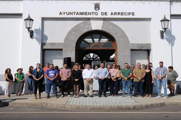 Con motivo del Día Internacional para la Eliminación de la Violencia Contra las Mujeres miembros de la Corporación municipal y personal del Ayuntamiento de Arrecife guardaron a mediodía de hoy un minuto de silencio en homenaje a las víctimas de la violencia machista a las puertas del Consistorio de la capital lanzaroteña.
