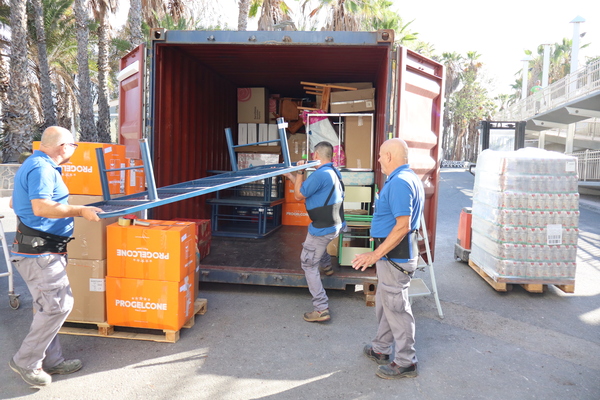 Se trata de un cargamento con aproximadamente 4.000 kilos de alimentos de primera necesidad adquiridos por San Juan de Dios, como arroz, pasta y aceite; más ropa, sillas, mesas, camas, material ortopédico, guantes, mascarillas, una bicicleta y un congelador, donados por distintas entidades y empresas canarias.