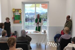 Esta iniciativa, que se realiza mensualmente, permite a las personas mayores del centro participar en un espacio de recogimiento y encuentro espiritual sin necesidad de desplazarse, favoreciendo su bienestar emocional y social. Durante la jornada, compartieron momentos de reflexión y acompañamiento con el sacerdote, quien mantiene un vínculo cercano con la comunidad.