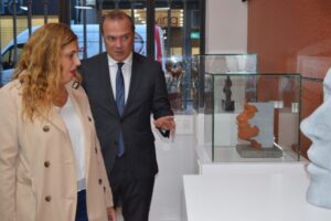 El vicepresidente del Cabildo de Gran Canaria, Augusto Hidalgo, junto a la consejera de Política Social, Accesibilidad, Igualdad y Diversidad, Isabel Mena, y la de Cultura, Guacimara Medina, inauguraron esta tarde en la sede de la Vicepresidencia, la exposición con las maquetas de los 15 proyectos que se han presentado al concurso de ideas para la creación, por primera vez en la isla, de una escultura conmemorativa de las mujeres víctimas de violencia machista.
