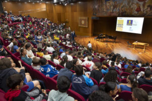 Desde el Servicio de Igualdad del Cabildo se continúa apostando por la sensibilización en materia de igualdad desde una perspectiva educativa, impulsando proyectos que promueven una sociedad más justa desde las primeras etapas formativas. En este contexto se han organizado los conciertos escolares 1000 años de mujeres en la música, un espectáculo que se representó hoy en el Paraninfo de la Universidad de Las Palmas de Gran Canaria, y lo volverá a hacer mañana en el Centro Cultural de la Villa de Santa Brígida. Dirigido al alumnado de Educación Primaria, este concierto ha ofrecido un recorrido a través de un milenio de música compuesta por mujeres, desde la Edad Media hasta la actualidad.