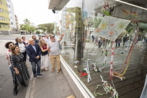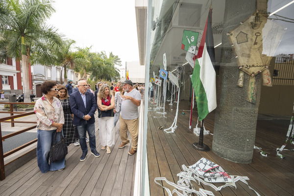 El acto contó con la presencia de varios y varias consejeras del Gobierno de la isla, y la participación de la presidenta de la Comunidad Palestina en Canarias, Fátima Suleimán, y del artista Paco Arana, a quien se debe el germen de esta iniciativa que permite además adquirir las piezas intervenidas artísticamente para recaudar fondos para la plataforma de apoyo al pueblo palestino.