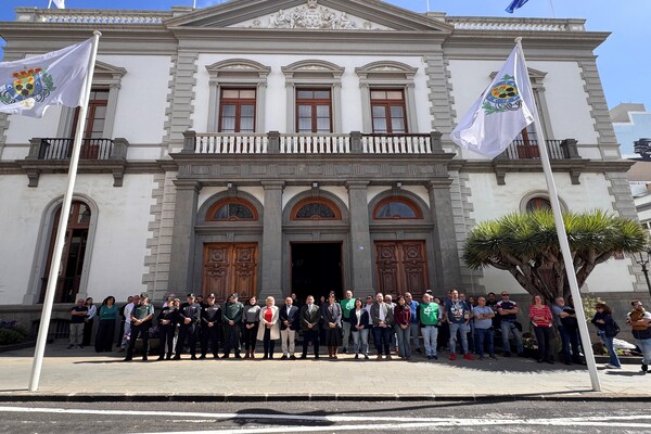 El Ayuntamiento de Santa Cruz de Tenerife, a las puertas del Consistorio de la capital, guardó hoy un respetuoso minuto de silencio en repulsa ante el último asesinato por violencia vicaria de Nadia, una niña de 5 años asesinada presuntamente por la ex pareja de su madre, el pasado 1 de abril en la provincia de Murcia.