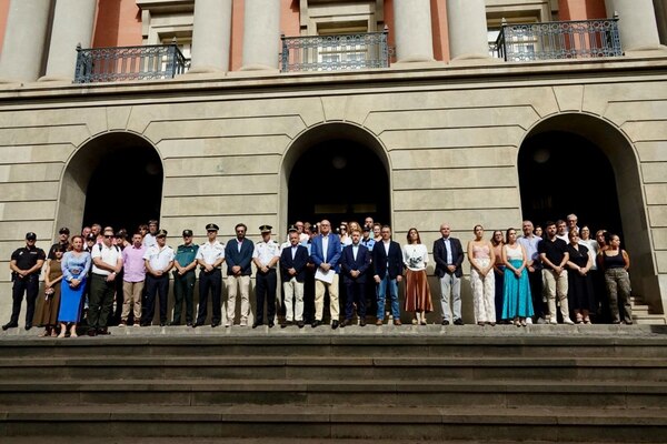La concentración, convocada por la Federación Canaria de Municipios (FECAM), tuvo lugar a las puertas de la Subdelegación del Gobierno en Santa Cruz. y contó con la presencia del alcalde, José Manuel Bermúdez, y del delegado del Gobierno en Canarias, Anselmo Pestana, así como con miembros de la Corporación municipal, trabajadores de la subdelegación del Gobierno en Santa Cruz, y representantes de las Fuerzas de Seguridad del Estado y agentes de la Policía Local de este municipio.