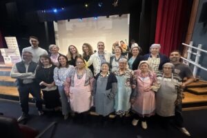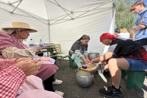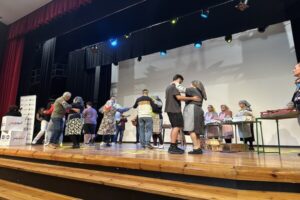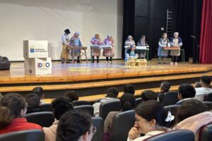 La actividad, en la que participaron 150 estudiantes del IES Felo Monzón de Las Palmas de Gran Canaria, comenzó con una charla y representación de las y los 13 mayores de la Fundación Canaria Proyecto Comunitario La Aldea que simularon un empaquetado de tomates y los cánticos que tenían para comunicarse durante el trabajo, distraerse, organizarse para reivindicar sus derechos, resolver sus cuitas o incluso enamorarse, para de este modo sortear la prohibición de hablar mientras trabajaban. “El trabajo no solo era un medio de sustento, sino también un espacio de interacción social” explica Daniel Morales.