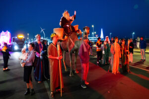 Miles de personas se agolparon desde el inicio de su recorrido en Agramar hasta su finalización a la altura del Gran Hotel para disfrutar del desfile de la Comitiva Real encabezada por Melchor, Gaspar y Baltasar, que contó con más de 450 participantes.