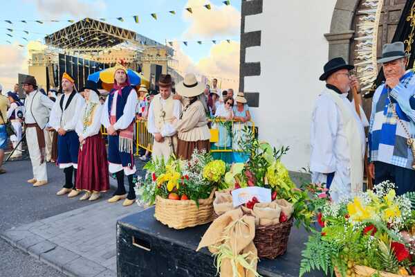 La festividad de Nuestra Señora de Los Dolores, también conocida como Virgen de los Volcanes, rememora el milagro ocurrido en abril de 1736, cuando, según la tradición, la lava de una erupción volcánica que amenazaba a los pueblos de Mancha Blanca y Tinajo retrocedió ante la presencia de la Virgen. Desde entonces, esta celebración ha adquirido un profundo significado religioso y cultural en la isla. Año tras año, los peregrinos llegan a la ermita de Mancha Blanca para rendir homenaje y presentar su ofrenda a la Virgen, consolidando la romería como una de las más fervientes y populares de Canarias.