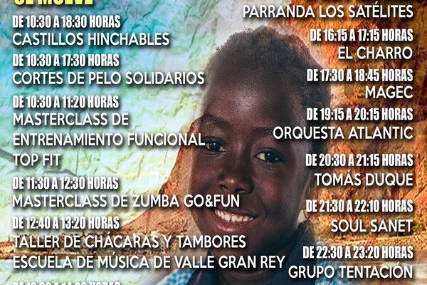 Así, desde las 10:30 horas hasta las 18:30 horas, los asistentes podrán participar en una serie de actividades y talleres que incluye castillos hinchables para los más pequeños, cortes de pelo solidarios, masterclass de entrenamiento funcional a cargo de TopFit, Masterclass de Zumba a cargo de Go&Fun, taller de chácaras y tambores a cargo de la Escuela de Música de Valle Gran Rey, taller de Silbo Gomero, actuación de la Escuela de Flamenco María Legarda y fiesta de la espuma.