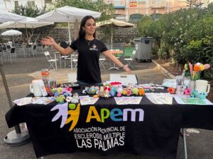 Es uno de nuestros objetivos prioritarios y por eso montamos mesas informativas en centros comerciales, centros de salud o distintos mercadillos de las islas, no solo para dar a conocer la enfermedad y la asociación, sino para recaudar fondos a través de lo que nosotros mismos hacemos en nuestros talleres de crochet y de resina.