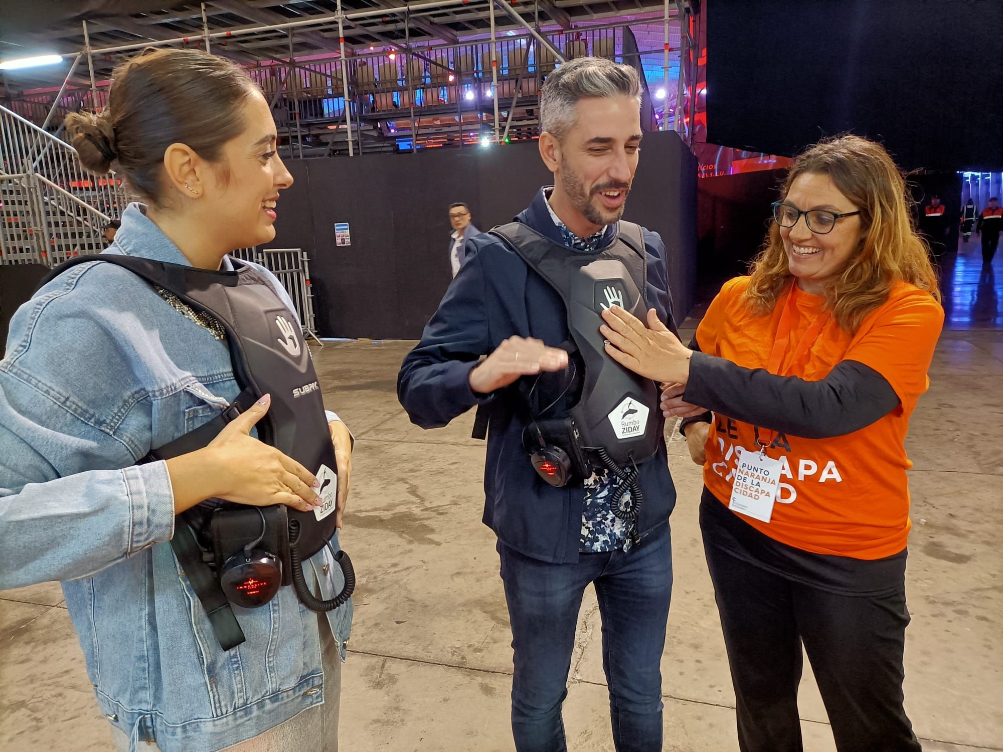 Las mochilas sensitivas son unos equipos que traducen los sonidos a vibraciones. En los conciertos, por ejemplo, van conectadas a la mesa de sonido y se manda la señal para que emita las vibraciones. Me gusta decir que es como escuchar a través del tacto.