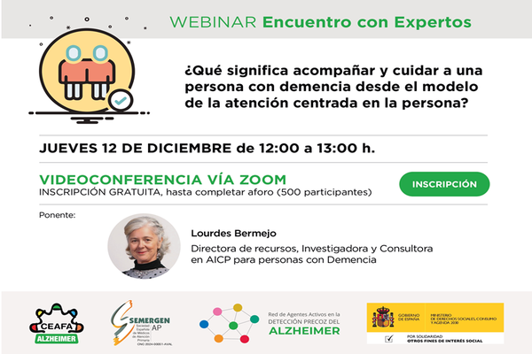 La Confederación Española de Alzheimer y otras Demencias (CEAFA) organiza un nuevo webinar de ‘Encuentro con Expertos’ el próximo jueves, 12 de diciembre de 12:00 a 13:00 horas