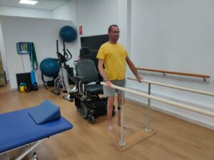 Para él la pandemia de covid-19 fue decisiva: “pasar mucho tiempo en casa hizo que me avanzara mucho la pérdida de masa muscular. Antes podía caminar en la calle, pero ahora solo puedo hacerlo en casa y necesito una silla de ruedas para poder desplazarme fuera de ella”. La fisioterapia es una de sus grandes aliadas para activar el cuerpo. Sin embargo, nos cuenta que desde que le dieron el diagnóstico, con 19 años, y hasta el día de hoy, solo ha recibido rehabilitación de la sanidad pública en dos ocasiones y no superaron en total los 5 meses.