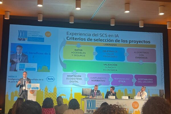 El responsable de la Sección de Historia de la Salud de la Dirección General de Programas Asistenciales del SCS, Marcos Estupiñán Ramírez, intervino en una mesa de debate sobre ‘Inteligencia Artificial, beneficios de lA para directivos’, en la que también participaron Josep Vidal Alaball, médico de familia, coordinador de la Unidad de Investigación e Innovación de Cataluña Central, y Noé Aparicio Alfaro, Head of Software Development en Roche.