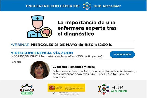 La Confederación Española de Alzheimer y otras Demencias (CEAFA) organiza el próximo miércoles, 21 de mayo, de 11:30 a 12:30 horas el segundo webinar del HUB Alzheimer ‘La importancia de una enfermera experta tras el diagnóstico’ en el que se hablará sobre cómo el cambio de necesidades en las personas diagnosticadas precozmente de Alzheimer ha implicado un cambio en las intervenciones, enfocadas en este momento en proporcionar las herramientas necesarias para la toma de decisiones de la persona diagnosticada. Para ello es necesario la incorporación de la enfermera experta tras el diagnóstico.