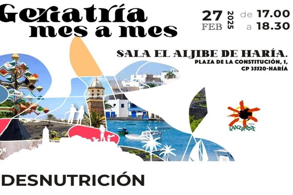 El Cabildo de Lanzarote, en colaboración con la Sociedad Canaria de Geriatría y Gerontología (Socanger), organiza una nueva sesión dentro del proyecto Geriatría mes a mes. El evento se llevará a cabo este jueves, 27 de febrero, en la Sala El Aljibe de Haría, de 17:00 a 18:30 horas. La ponencia estará a cargo de la dietista-nutricionista y fisioterapeuta del Servicio Canario de la Salud, Cristina Cazorla Guillén, quien abordará la desnutrición entre las personas mayores.