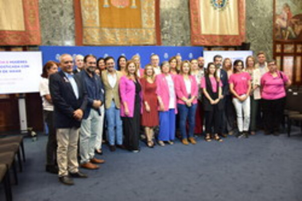 El Cabildo de Tenerife conmemoró el viernes 18 de octubre el Día Internacional del Cáncer de Mama, con la lectura del manifiesto elaborado por la Federación Española de Cáncer de Mama (FECMA), que aglutina un total de 48 entidades. A la lectura asistieron la presidenta del Cabildo de Tenerife, Rosa Dávila, la consejera de Acción Social, Águeda Fumero; miembros de la Corporación insular; la presidenta de la Asociación de Cáncer de Mama de Tenerife, #AMATE, Mari Carmen Bonfante; las concejalas del Ayuntamiento de Santa Cruz de Tenerife, Purificación Dávila y Ana Belén Mesa; el director del Área de Salud de Tenerife, Rafael Luis Martín; la campeona del mundo de Tiro con Arco, Yanira Pérez García, y el arquitecto, escultor, pintor, grabador y dibujante, Felipe Hodgson Ravina.