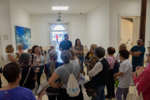 Acompañados por el propio Rosmen Quevedo y dos monitores especializados los participantes fueron recibidos en la Casa de la Cultura Agustín de la Hoz por el teniente de alcalde de Arrecife, Echedey Eugenio, y la concejala de Cultura, Abigail González, y visitaron las distintas exposiciones que acogen las salas de este emblemático espacio cultural de la ciudad.